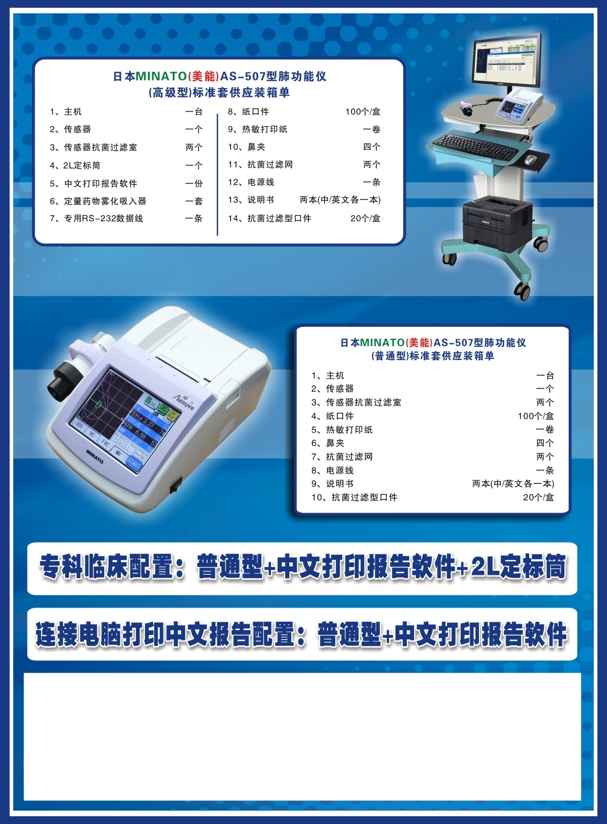 日本原产美能AS-507肺功能仪检测项目/技术参数