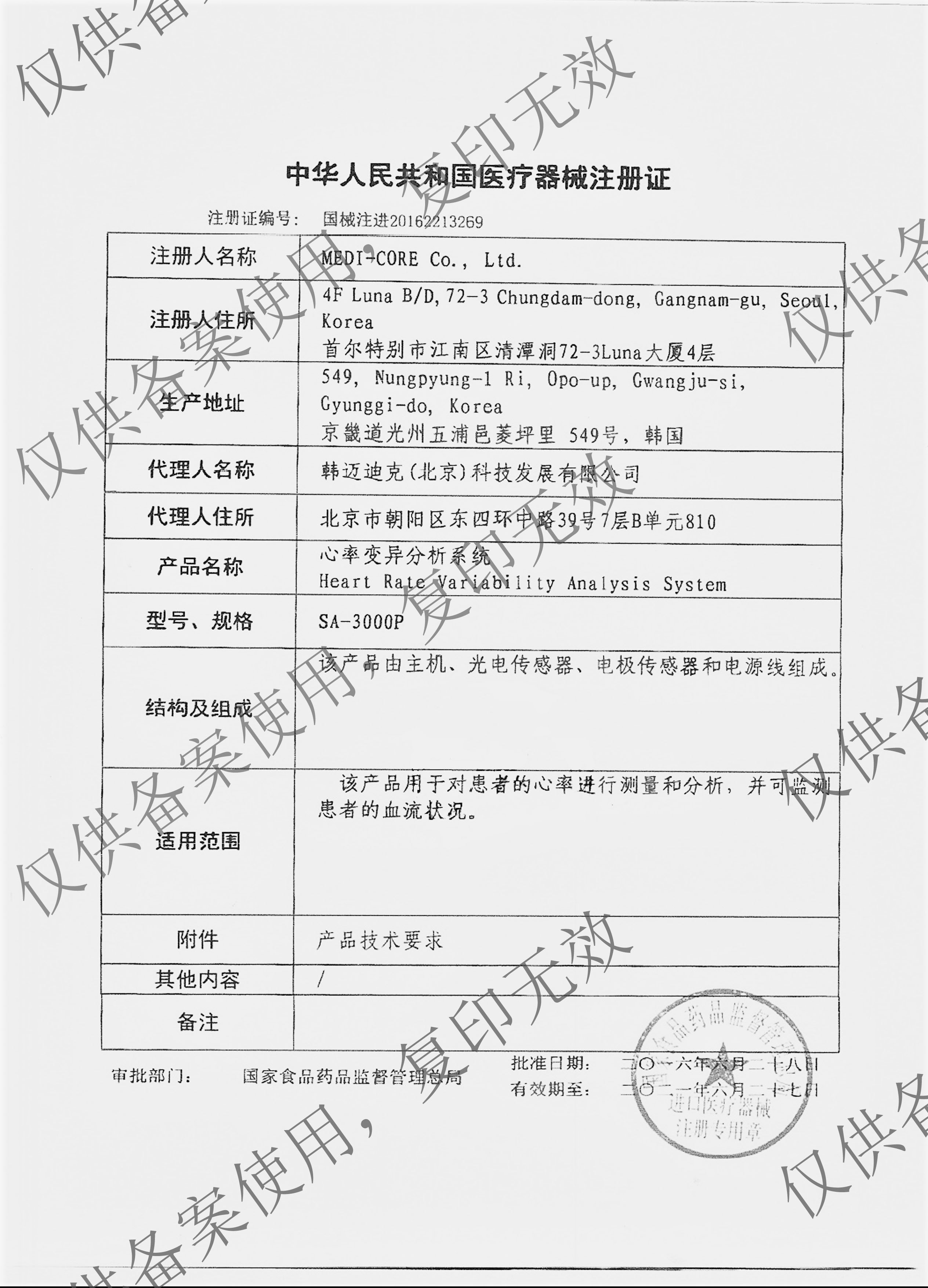 美迪克SA-3000P无创精神压力分析仪技术指标:
